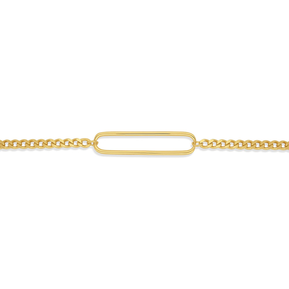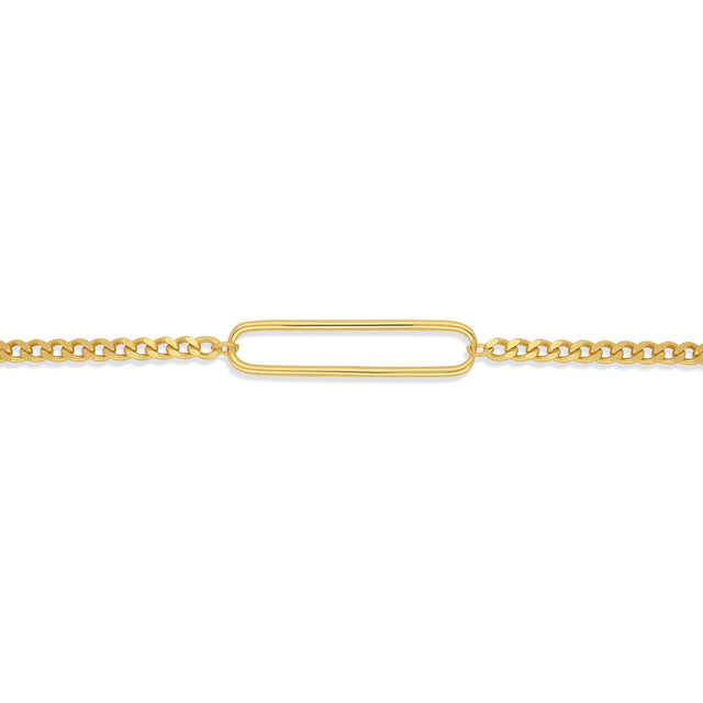 Das Armband Frame verbindet filigrane Eleganz mit einem markanten Designelement: einem einzelnen ovalen Glied, das als dezenter Blickfang dient. Ob solo getragen oder kombiniert mit anderen Armbändern – Frame strahlt Zurückhaltung und Stilbewusstsein aus.