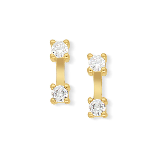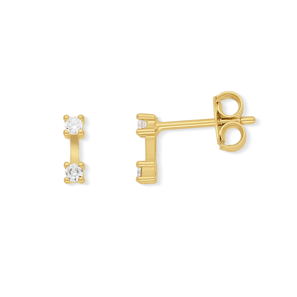 Die Nia Ohrstecker vereinen minimalistische Eleganz mit einem besonderen Twist. Zwei kleine, funkelnde Zirkonia sind durch eine feine goldene Linie verbunden und sorgen für ein stilvolles Design mit Tiefe.