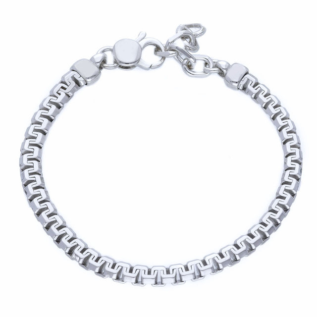 Bloc ist ein markantes Gliederarmband mit kubisch geformten Elementen, die ihm eine klare, moderne Ausstrahlung verleihen. Gefertigt aus massivem 925 Sterling Silber und hochglanzpoliert, kombiniert es geometrische Präzision mit zeitloser Eleganz.