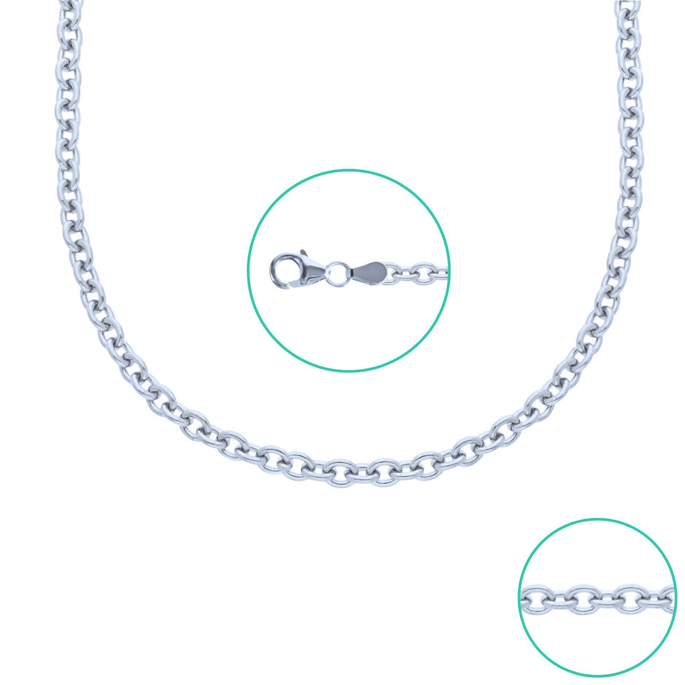 Anker 2.2mm ist eine klassische Ankerkette mit oval gearbeiteten, gleichmäßigen Gliedern, die ihr einen harmonischen und zugleich markanten Look verleihen. Durch die hochglanzpolierte Oberfläche schimmert das 925 Sterling Silber edel und hochwertig.