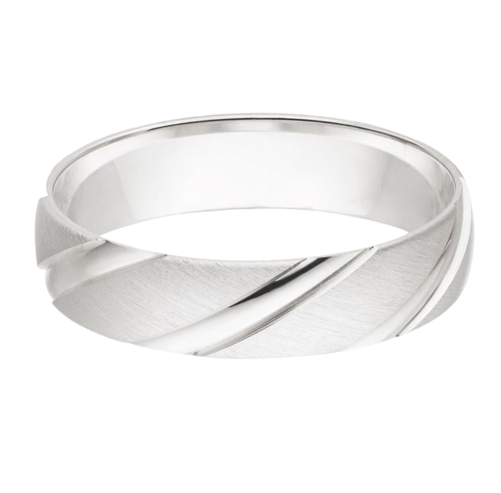 Der Milan Ring verkörpert maskuline Eleganz mit einem Hauch von Bewegung. Die diagonal verlaufenden, polierten Cuts setzen einen kraftvollen Kontrast zur mattierten Oberfläche – ein Design, das Stärke und Stil perfekt vereint.