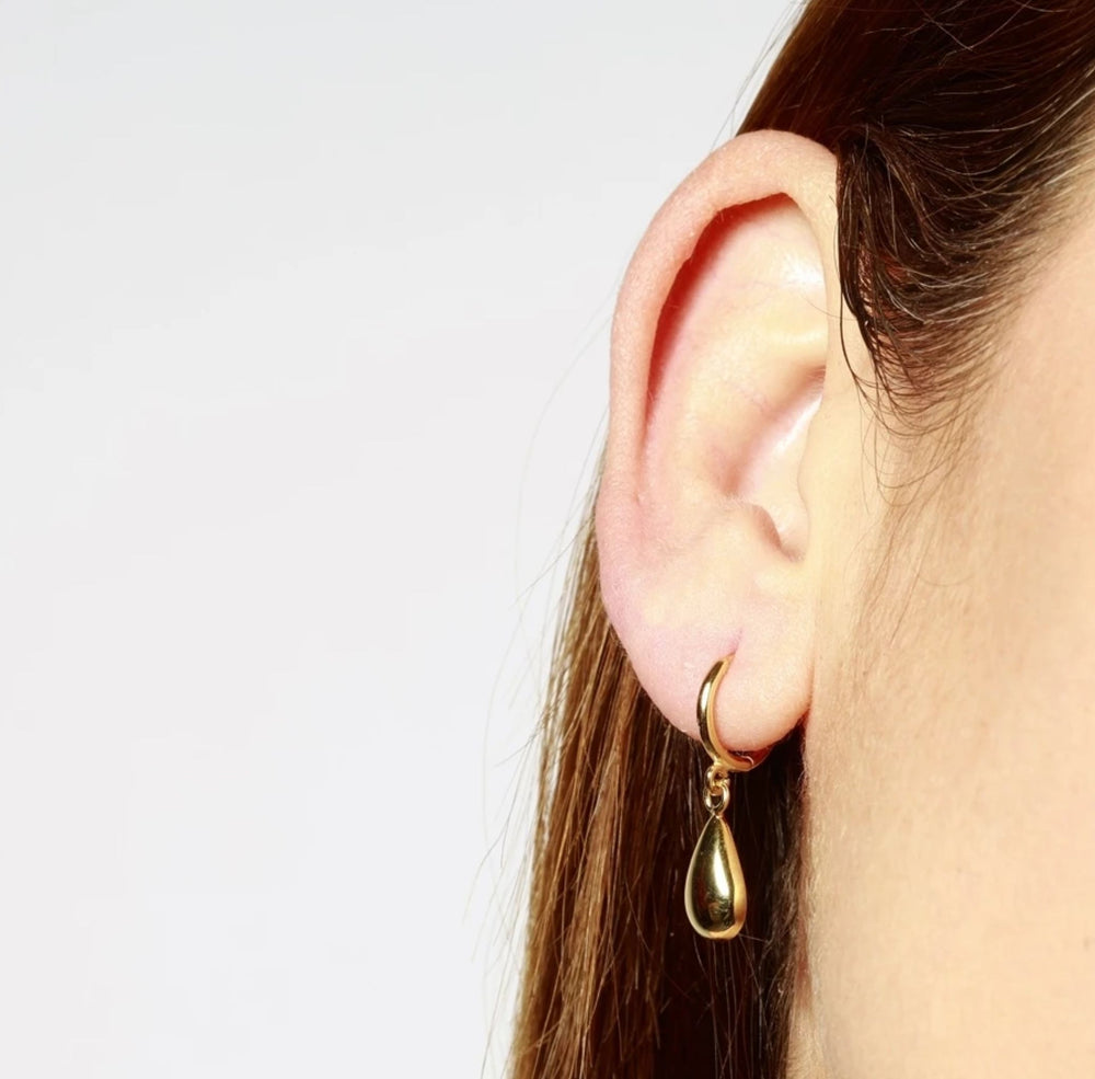 Mit ihrer markanten Tropfenform sind diese vergoldeten Creolen ein stilvolles Statement für jedes Outfit. Der glänzende Anhänger schwingt sanft bei jeder Bewegung und verleiht deinem Look eine moderne, fließende Eleganz.