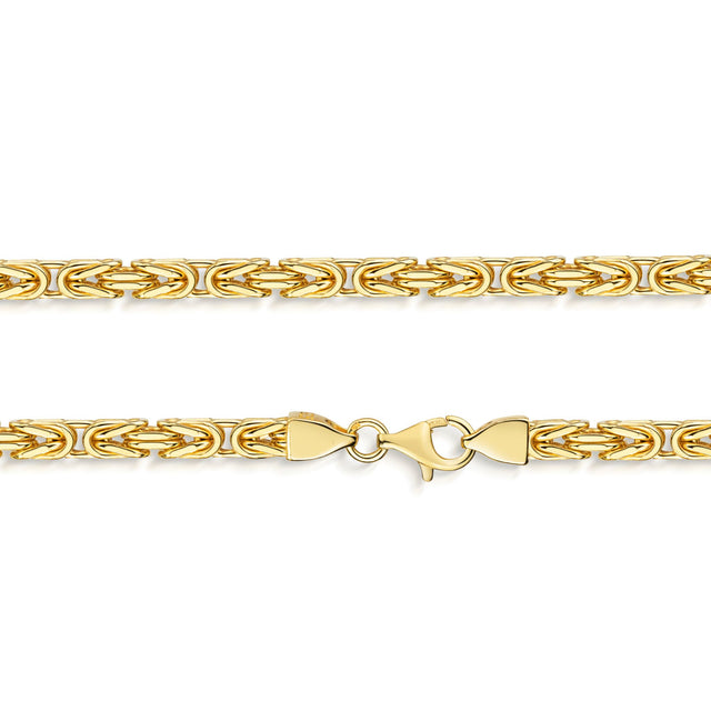 König 3.1mm ist eine kunstvoll gearbeitete Königskette, deren ineinander verflochtene Glieder für außergewöhnliche Stabilität und eine unverwechselbare Optik sorgen. Der gleichmäßige, markante Look und die hochglanzpolierte Oberfläche machen diese Kette zu einem luxuriösen Klassiker.