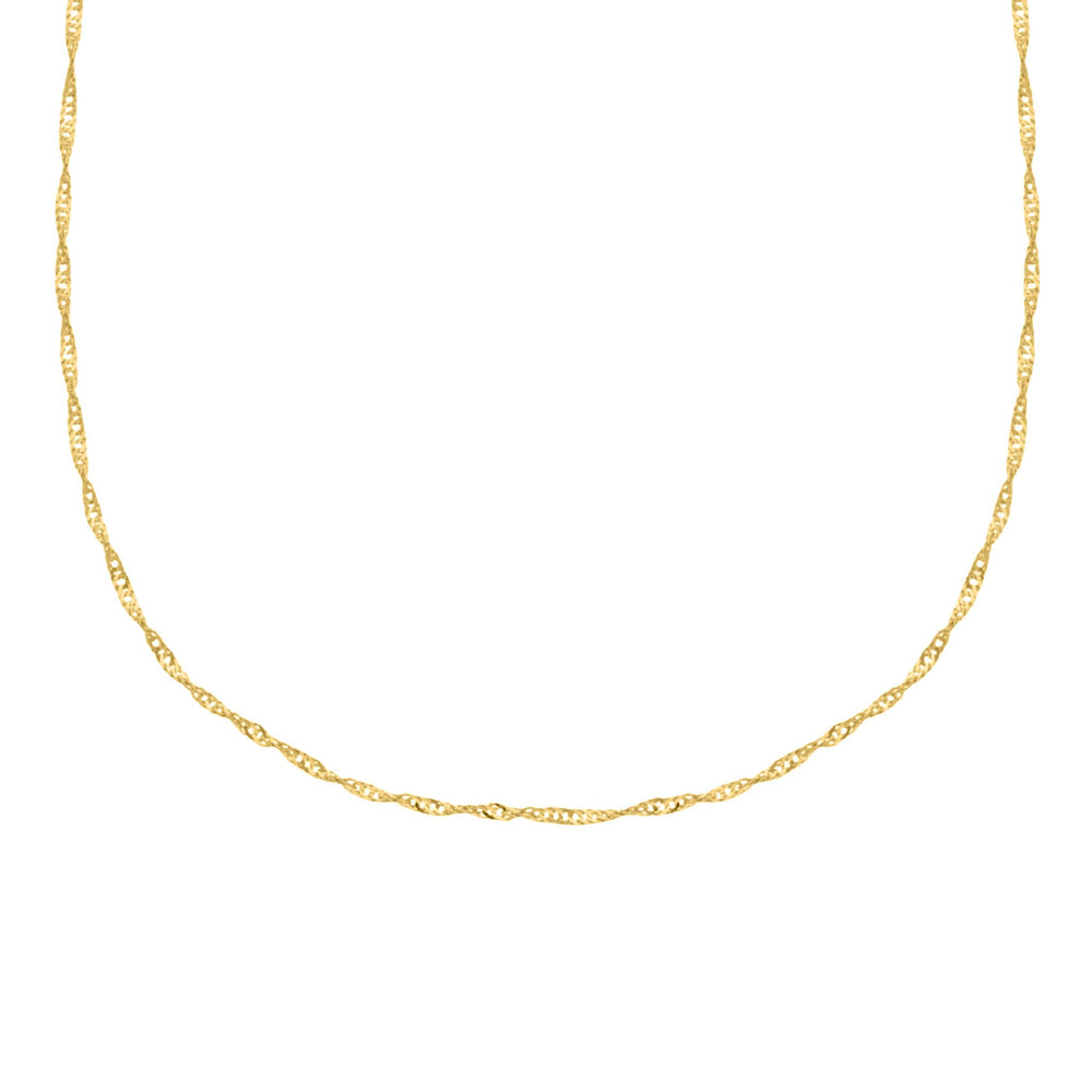 Singapur 2.1mm ist eine elegante Halskette mit raffiniert gedrehten Gliedern, die das Licht bei jeder Bewegung intensiv reflektieren. Das markante, funkelnde Design macht sie zu einem echten Blickfang – sowohl solo getragen als auch in Kombination mit Anhängern.