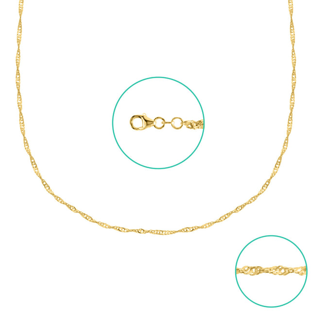 In edlem Silber oder luxuriöser Vergoldung erhältlich, ist Singapur 2.1mm vielseitig tragbar: ein elegantes Schmuckstück für alle, die ein wenig Glanz in ihren Alltag bringen möchten.